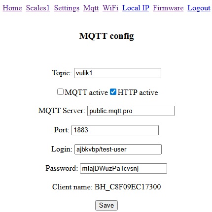 За потреби надсилати дані на ваш MQTT-сервер активуйте прапорець «MQTT active» та заповніть поля налаштувань. Ця функція пристрою працює в режимах WiFi та GSM.